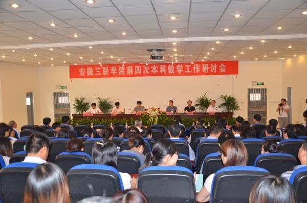 為切實(shí)做好“迎評促建”工作,貫徹落實(shí)《教育部關(guān)于全面提高高等教育質(zhì)量的若干意見》的精神,5月28日下午,我院在B01學(xué)術(shù)報(bào)告廳隆重召開了安徽三聯(lián)學(xué)院第四次本科教學(xué)工作研討會。蒞臨指導(dǎo)此次會議的有教育部評估專家華中師范大學(xué)凌云教授和南京工程學(xué)院李建啟教授,三聯(lián)教育集團(tuán)總裁、安徽三聯(lián)學(xué)院董事長余皖生先生和安徽省教育廳原常務(wù)副廳長、三聯(lián)教育集團(tuán)顧問金輝先生;出席會議的還有學(xué)院政黨領(lǐng)導(dǎo)班子和全院副科級以上干部。會議由安徽三聯(lián)學(xué)院常務(wù)副院長易佑民教授主持。?