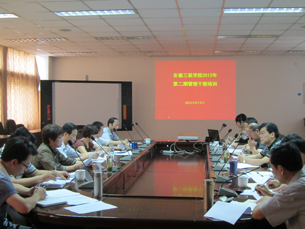 6月2日,安徽三聯(lián)學院2012年第二期管理干部培訓在A樓五樓會議室舉行。本次培訓由學院人事處組織,參加本次培訓活動的有各行政職能部門的領(lǐng)導及各院系部分分管教學的教學副主任,共13人參加培訓。