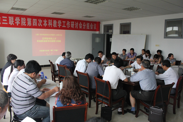 ??? 為貫徹落實《教育部關(guān)于全面提高高等教育質(zhì)量的若干意見》的精神,繼續(xù)保持和發(fā)揚安徽三聯(lián)學(xué)院第四次本科教學(xué)工作研討會的良好會風(fēng),6月1日下午,安徽三聯(lián)學(xué)院召開了 “應(yīng)用型本科人才實踐教育教學(xué)的探索與實踐”主題研討會。理科組、文科組、處室組三組分別分別在交通學(xué)院會議室、A樓會議室及A樓213展開討論。