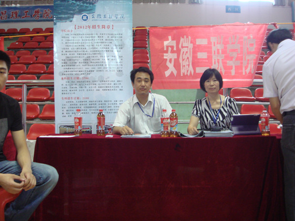 2012年6月26日上午,根據(jù)學(xué)院招生指揮部安排,工商管理系常務(wù)主任謝艷平及負(fù)責(zé)蚌埠地區(qū)招生的李俊峰老師代表學(xué)院參加了在蚌埠市體育場(chǎng)室內(nèi)體育館舉行的“安徽省2012年普通高校招生咨詢會(huì)”。中國(guó)科技大學(xué)、合肥工業(yè)大學(xué)、安徽大學(xué)、安徽三聯(lián)學(xué)院等省內(nèi)外90多所不同層次的高等學(xué)校參加了咨詢會(huì),與2000多為考生和家長(zhǎng)現(xiàn)場(chǎng)交流。
