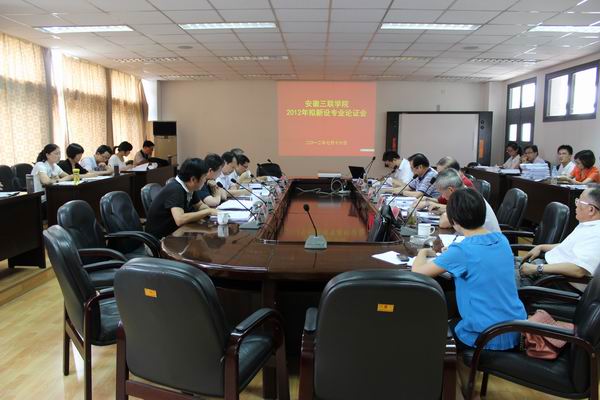 為了進(jìn)一步加強(qiáng)學(xué)科專業(yè)建設(shè),夯實辦學(xué)基礎(chǔ),7月16日下午,學(xué)院在A樓會議室召開了2012年擬新設(shè)專業(yè)論證會。此次會議特邀省教育廳高教處副處長梁祥軍、省發(fā)改委社會發(fā)展處副處長朱永峰、安徽大學(xué)教務(wù)處處長薛照明、安徽農(nóng)業(yè)大學(xué)教務(wù)處處長方明和合肥學(xué)院教務(wù)處副處長杜奕智作為校外評審專家,學(xué)院趙守忠、張脈強(qiáng)和劉寶亮三位教授應(yīng)邀作為院內(nèi)專家,學(xué)院常務(wù)副院長易佑民,院長助理、教務(wù)處處長姜發(fā)根,評建辦主任操曉峰,各擬申報新專業(yè)單位主要負(fù)責(zé)人和匯報人以及教務(wù)處相關(guān)人員參加了會議。會議由常務(wù)副院長易佑民主持。