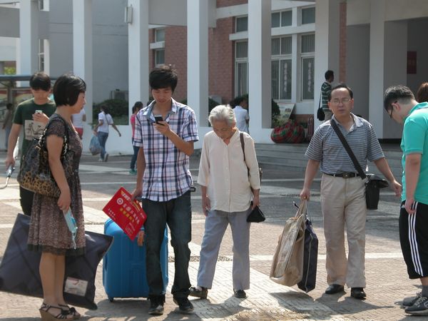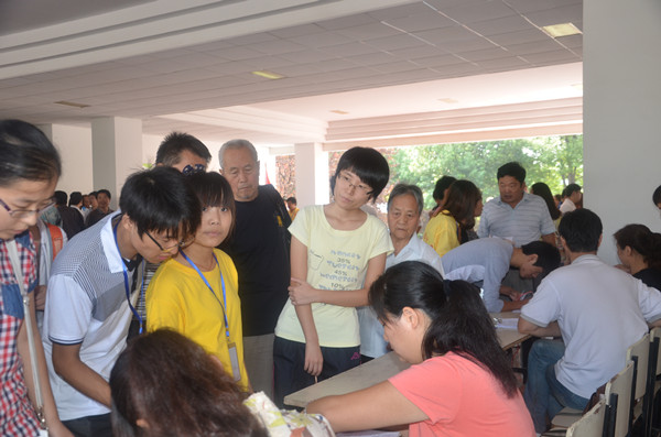 相比一個(gè)人來(lái)報(bào)到的獨(dú)立,一家老少齊裝來(lái)校就多了一份溫馨。在學(xué)校的綠色通道上,一家三代同堂,就是一道亮麗的風(fēng)景。奶奶、爸爸、媽媽一同陪著今年一起考上我校的兄妹二人,奶奶臉上洋溢開(kāi)心的笑容,當(dāng)記者問(wèn)奶奶是否喜歡我們學(xué)校時(shí),奶奶笑著說(shuō):“學(xué)校的老師都很好,這里的學(xué)生都很熱心,把我孫子的入學(xué)手續(xù)都搞好了,只要我孫子孫女在這好就好??!”奶奶這些話(huà)雖然質(zhì)樸,但是透露著對(duì)孫子孫女的疼愛(ài)和期望,也是對(duì)學(xué)校的肯定。