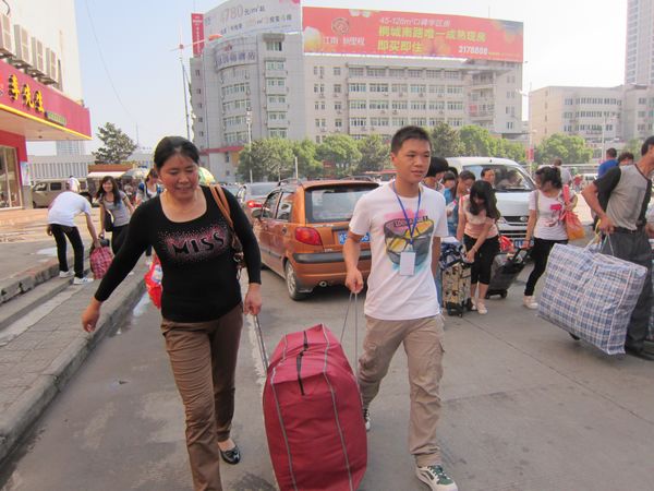 看到攜帶大量行李的新生及家長們,志愿者們第一時間沖上去,熱情地幫助他們搬運(yùn)行李,并引導(dǎo)他們乘坐學(xué)院的接送專車。