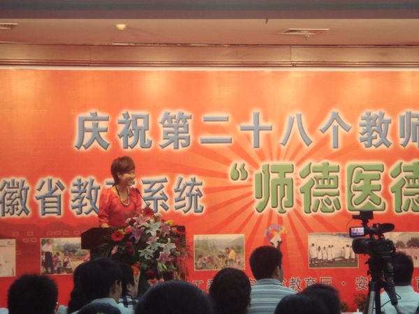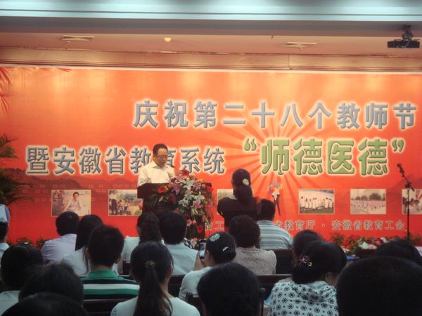 9月6日上午,省教育工委、省教育廳和省教育工會在合肥舉行慶祝第28個教師節(jié)暨安徽省教育系統(tǒng)“師德醫(yī)德”演講展演活動,參會的在肥各高校教師代表近二百人共同聆聽了安徽中醫(yī)學(xué)院黃莉等十位我省教育系統(tǒng)優(yōu)秀教師和他們的代表作的感人的演講和他們站在精神家園的高地對教師內(nèi)涵及教師職業(yè)幸福感的深刻理解,我院參會教師代表深受教育和感動。