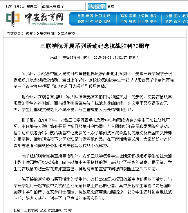 中安教育網(wǎng)報(bào)道鏈接:http://edu.anhuinews.com/system/2015/09/06/006940493.shtml