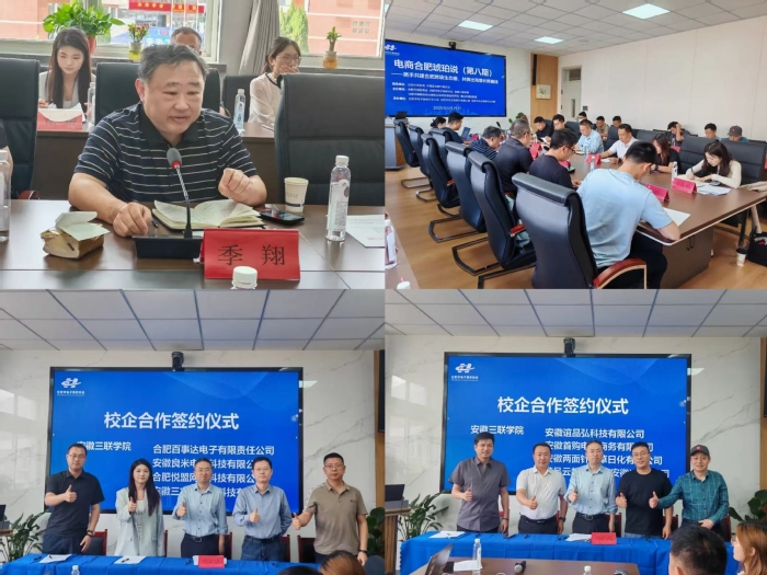 與會(huì)人員圍繞跨境電商平臺(tái)、服務(wù)商就跨境趨勢(shì)、生態(tài)賦能、共建生態(tài)圈、跨境物流及海外倉(cāng)等話題進(jìn)行交流探討。傅煒代表學(xué)校與安徽誼品弘科技、安徽首購(gòu)電子商務(wù)有限公司等8家知名企業(yè)簽署合作協(xié)議,共建跨境電商實(shí)習(xí)實(shí)訓(xùn)基地,推動(dòng)人才培養(yǎng)與產(chǎn)業(yè)需求精準(zhǔn)對(duì)接。
