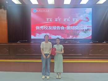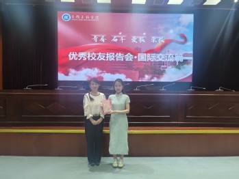 洪梅為林月明頒發(fā)優(yōu)秀校友榮譽(yù)證書。彭妍作為林月明的輔導(dǎo)員為其頒發(fā)就業(yè)創(chuàng)業(yè)校外導(dǎo)師證書。國際合作交流中心主任李燕詳細(xì)解讀了學(xué)校國際化戰(zhàn)略布局,重點(diǎn)介紹了學(xué)生海外交流項(xiàng)目與成果。