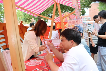 蕭風(fēng)書畫研究會和剪紙協(xié)會以“反法西斯戰(zhàn)爭80周年”為主題開展活動。蕭風(fēng)書畫研究會展出五十余幅以抗戰(zhàn)詩詞、英雄人物為主題的書畫作品,剪紙協(xié)會將傳統(tǒng)藝術(shù)與主題巧妙融合再現(xiàn)抗戰(zhàn)場景,引得師生駐足贊嘆。活動現(xiàn)場還設(shè)置趣味互動,蕭風(fēng)書畫研究會邀請書法愛好者創(chuàng)作并開展游戲送書簽,剪紙協(xié)會安排剪紙教學(xué),讓傳統(tǒng)技藝與紅色文化深度融合。