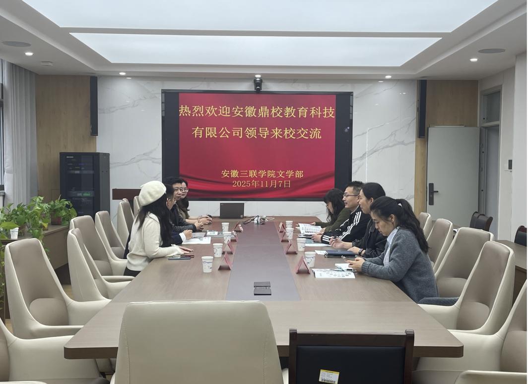11月7日,安徽鼎校教育科技有限公司高校合作部運(yùn)營總監(jiān)李治一行應(yīng)邀來訪文學(xué)部,雙方圍繞漢語言文學(xué)專業(yè)實(shí)習(xí)基地建設(shè)展開深入交流。