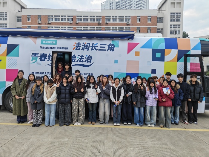 12月19日,“法潤(rùn)長(zhǎng)三角 青春繪法治”長(zhǎng)三角民辦高校大學(xué)生法治素養(yǎng)公益廣告邀請(qǐng)賽優(yōu)秀作品巡展活動(dòng)在我校順利舉辦。巡展大巴與實(shí)體展板在校園內(nèi)集中展示了十年來(lái)的優(yōu)秀作品,吸引了眾多師生。