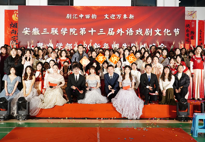 12月30日晚,安徽三聯(lián)學(xué)院第十三屆外語(yǔ)戲劇文化節(jié)在大學(xué)生活動(dòng)中心順利舉行,本屆文化節(jié)以“劇匯中西韻,文迎萬(wàn)象新”為主題,通過(guò)戲劇展演融合中西文化,以文藝創(chuàng)新迎接嶄新氣象。副校長(zhǎng)蔡文芬為獲獎(jiǎng)團(tuán)隊(duì)頒獎(jiǎng),教務(wù)處、校團(tuán)委、文學(xué)部負(fù)責(zé)人及師生代表400余人齊聚一堂,以戲劇為媒共迎新年。