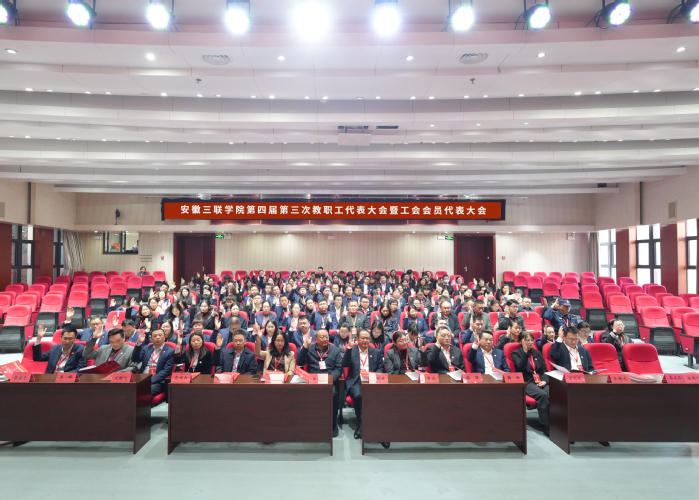 1月16日,安徽三聯(lián)學(xué)院第四屆第三次教職工代表大會(huì)暨工會(huì)會(huì)員代表大會(huì)在圖書(shū)館學(xué)術(shù)報(bào)告廳勝利召開(kāi)。省教育督導(dǎo)專員、校黨委書(shū)記王光虎,校董事長(zhǎng)余皖生,校長(zhǎng)江秀麗及其他在肥校領(lǐng)導(dǎo),教職工及工會(huì)會(huì)員等143名代表參加大會(huì)。大會(huì)由副校長(zhǎng)蔡文芬主持。
