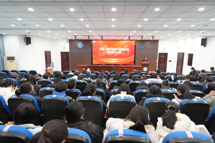 1月19日,安徽三聯(lián)學(xué)院第九屆輔導(dǎo)員素質(zhì)能力大賽決賽在B01學(xué)術(shù)報(bào)告廳舉行。副校長(zhǎng)蔡文芬為大賽致辭。賽事特邀請(qǐng)省內(nèi)高校的學(xué)工領(lǐng)域?qū)<遗c校內(nèi)相關(guān)部門負(fù)責(zé)人共同擔(dān)任評(píng)委,各院部學(xué)管主任與全體輔導(dǎo)員現(xiàn)場(chǎng)觀摩,共話育人之道。