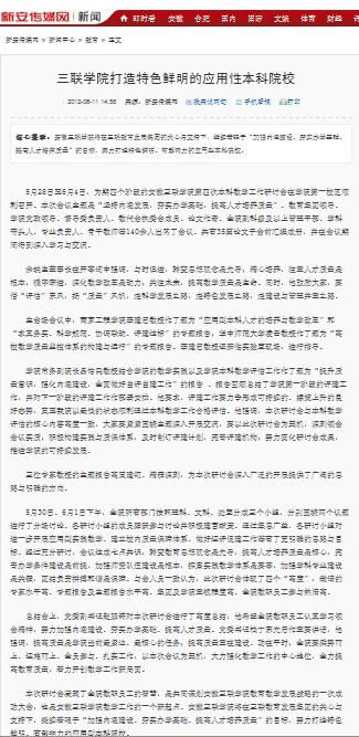 5月28日至6月4日,為期四個階段的安徽三聯(lián)學(xué)院第四次本科教學(xué)工作研討會在學(xué)院第一校區(qū)順利召開。會議圍繞“構(gòu)建校內(nèi)教學(xué)質(zhì)量保障體系的探索”和“應(yīng)用型本科人才實(shí)踐教育教學(xué)的探索與實(shí)踐”兩個議題進(jìn)行了深入的研究和探討,并達(dá)成了高度共識。本次會議也受到了省內(nèi)外多家平面和網(wǎng)絡(luò)媒體的高度關(guān)注,網(wǎng)易新聞、安徽青年報(bào)、新安晚報(bào)、市場星報(bào)、中安在線、新安傳媒網(wǎng)均從不同的角度對本次研討會進(jìn)行了報(bào)道。