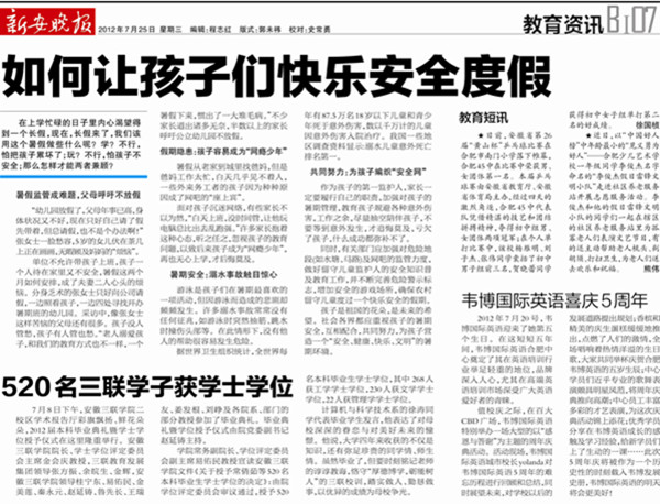 7月8日下午,安徽三聯(lián)學(xué)院2012屆本科畢業(yè)典禮在我院二校區(qū)學(xué)術(shù)報(bào)告廳舉行。500余名畢業(yè)生身著莊嚴(yán)的學(xué)士服,將在此告別母校,踏上人生的新征程。由院學(xué)位評(píng)定委員會(huì)審議通過(guò),授予520名本科畢業(yè)生學(xué)士學(xué)位,其中 268人獲工學(xué)學(xué)士學(xué)位,230人獲文學(xué)學(xué)士學(xué)位,22人獲管理學(xué)學(xué)士學(xué)位。這是我院首次本科畢業(yè)典禮,意義重大,獲得了省內(nèi)多家知名媒體的高度關(guān)注,它們均用不同的篇幅,第一時(shí)間報(bào)道了我院畢業(yè)典禮的盛況。