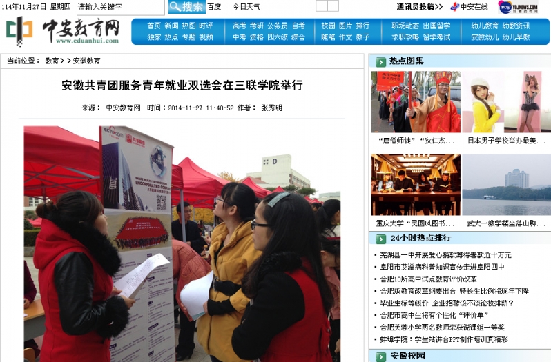 中安教育網(wǎng)報道鏈接:http://edu.anhuinews.com/system/2014/11/27/006609657.shtml