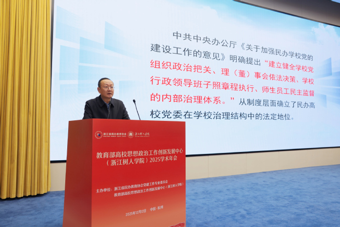12月12日,省教育督導(dǎo)專員、校黨委書記王光虎應(yīng)邀參加教育部高校思想政治工作創(chuàng)新發(fā)展中心(浙江樹人學(xué)院)2025學(xué)術(shù)年會(huì)。