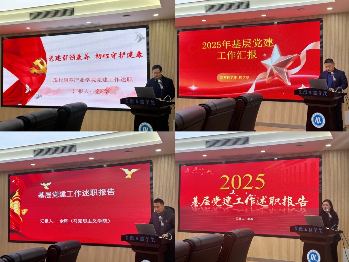 會上,現(xiàn)代康養(yǎng)產(chǎn)業(yè)學(xué)院黨委書記金華等四位院級黨組織書記圍繞學(xué)習(xí)貫徹習(xí)近平新時(shí)代中國特色社會主義思想、開展深入貫徹中央八項(xiàng)規(guī)定精神學(xué)習(xí)教育、強(qiáng)化黨的組織和黨的工作有效覆蓋、推動黨建和業(yè)務(wù)深度融合、推進(jìn)黨員隊(duì)伍建設(shè)、履行基層黨建工作責(zé)任等方面進(jìn)行現(xiàn)場述職。其余院級黨組織書記作書面述職。